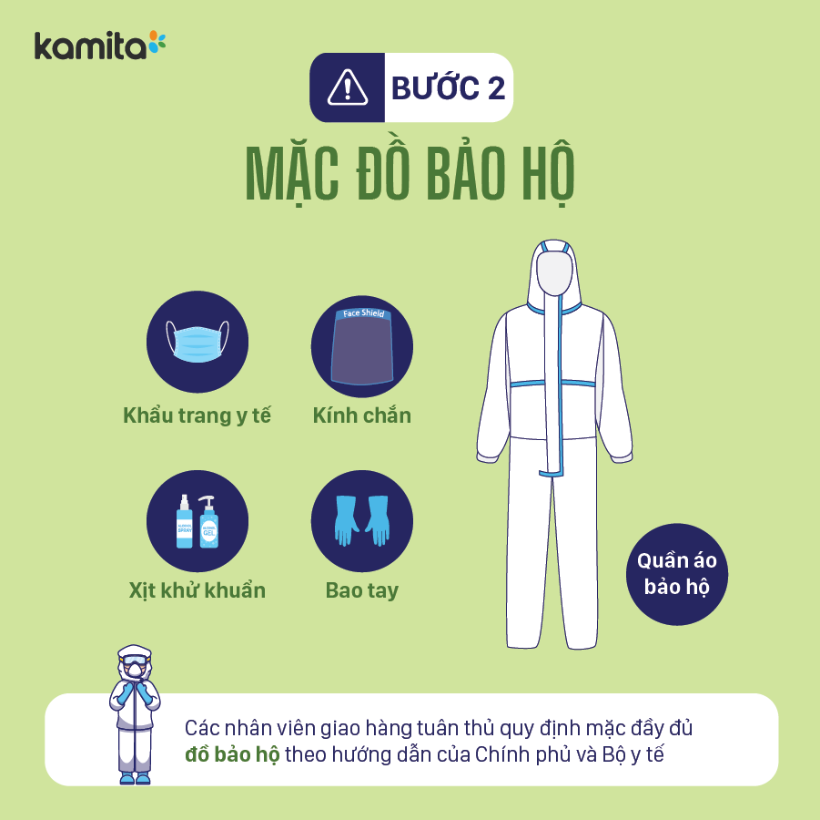 Mọi nhân viên kỹ thuật và giao hàng của Kamita cam kết thực hiện 6 bước vận chuyển và lắp đặt an toàn trong mùa dịch như sau: