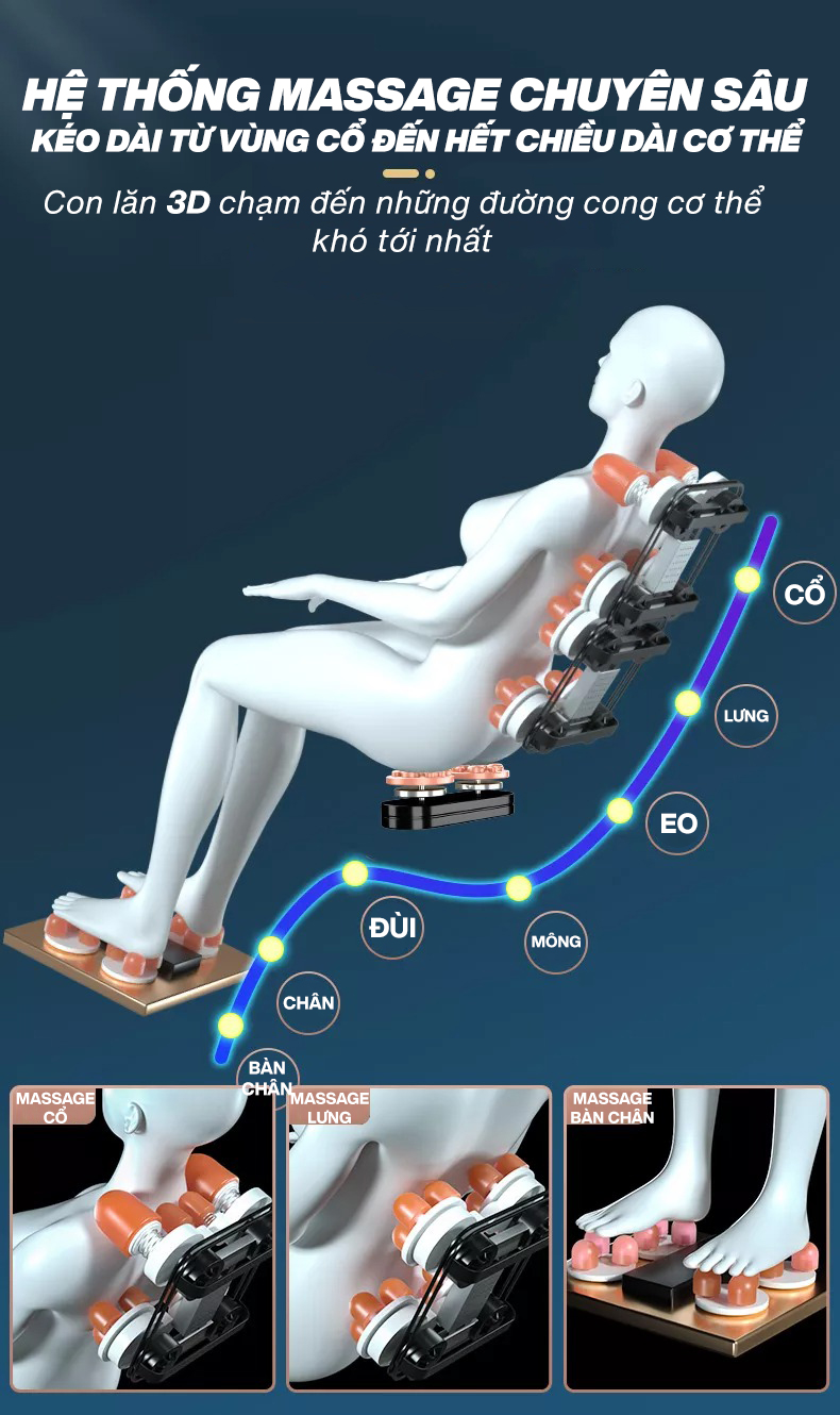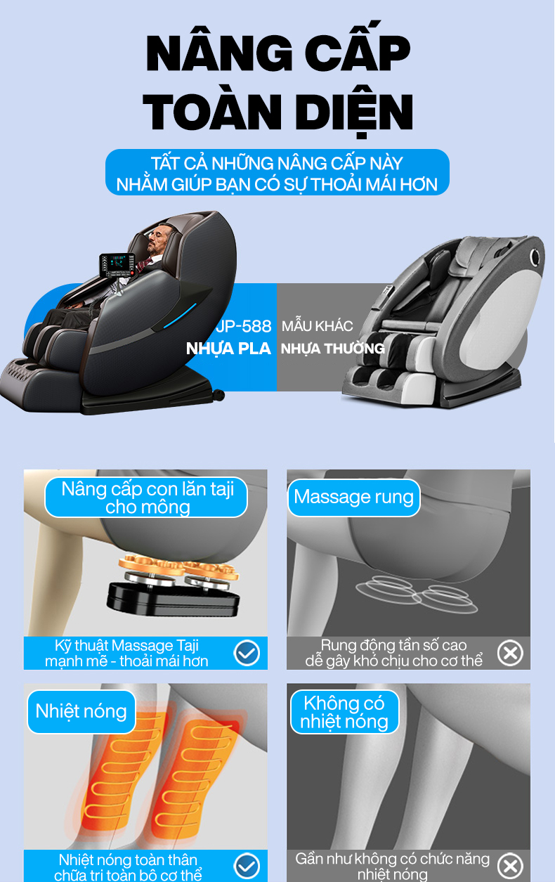 Ghế massage toàn thân Kamita JP-588 sở hữu các công nghệ massage vượt trội, giúp người dùng đạt được hiệu quả chăm sóc sức khỏe toàn diện. Với hơn 20 tính năng massage thông minh, Kamita JP-588 được nhiều chuyên gia đánh giá là một trong những sản phẩm hỗ trợ cải thiện sức khỏe tốt nhất cho người dùng. Khung sườn SL thế hệ mới Khung sườn SL được thiết kế đường cong mềm mại ôm trọn xương sống, giúp hỗ trợ con lăn di chuyển sâu và chính xác hơn vào các huyệt đạo. Không chỉ vậy, khung sườn SL còn giúp nâng đỡ cơ thể khi tiến vào trạng thái không trọng lực, nhờ đó giảm thiểu tối đa áp lực lên cột sống.