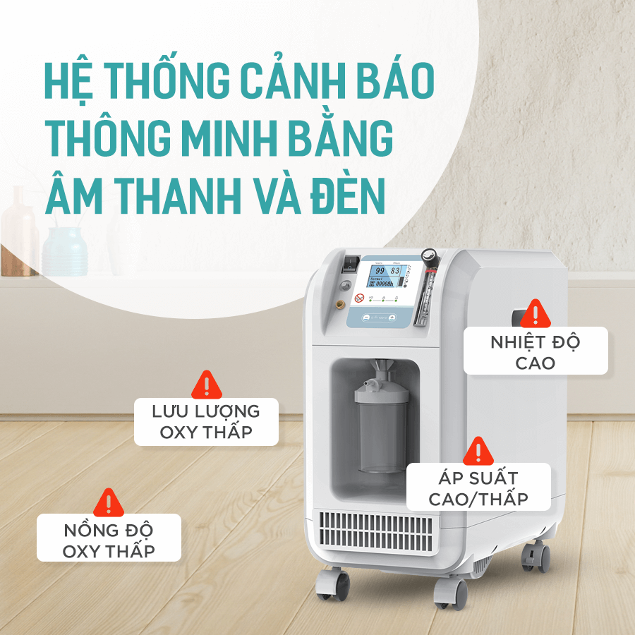 - Nồng độ oxy tinh khiết: ≥93% ± 3%