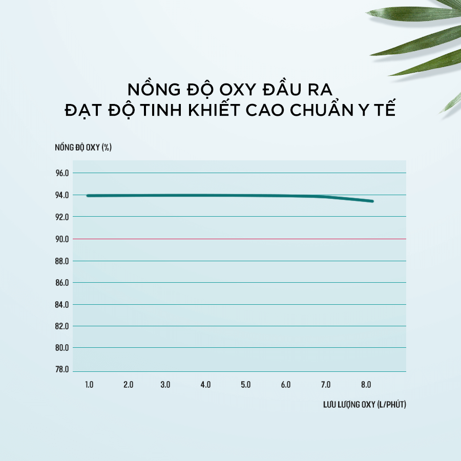 - Nồng độ oxy tinh khiết: 96% ± 2%
